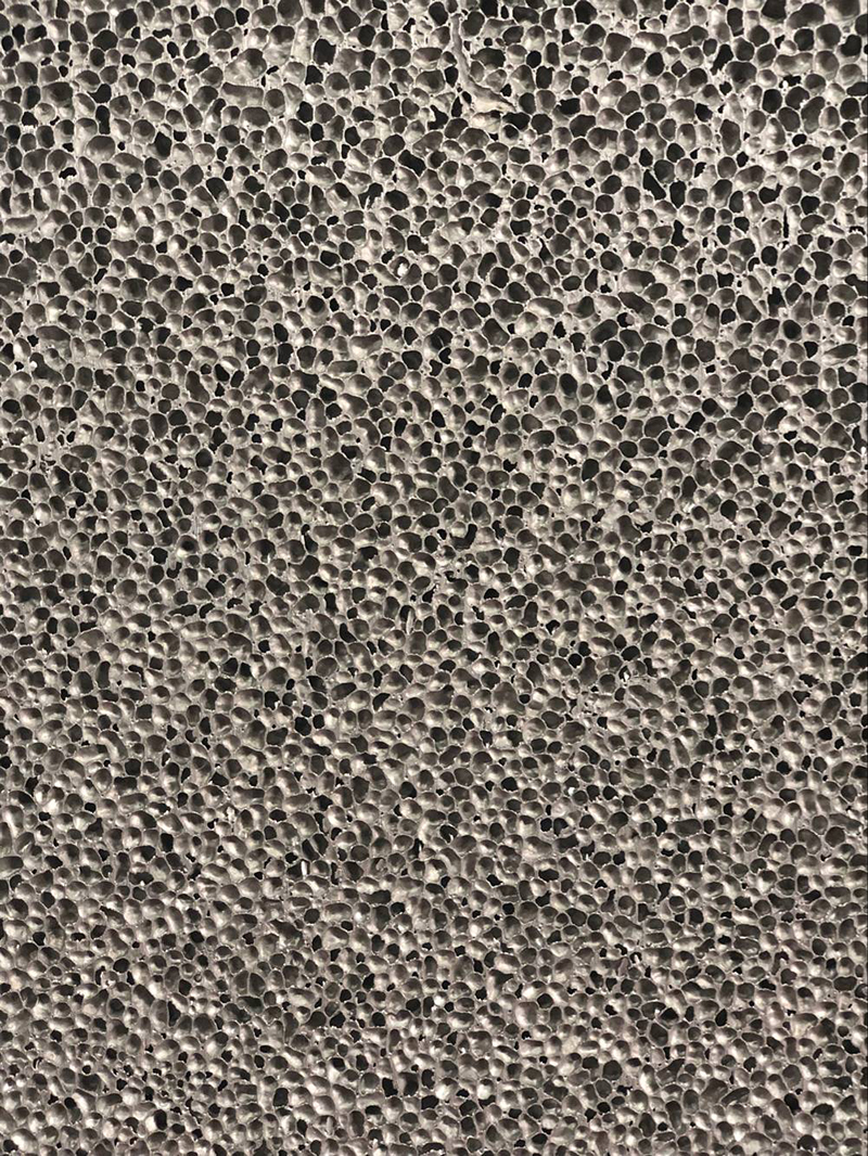 發(fā)泡鋁是以氫化鈦為增粘劑和發(fā)泡劑,加入熔融的鋁中攪拌而制成的。是一種集結(jié)構(gòu)-性能一體化的新型功能材料,內(nèi)部是有許多的氣泡層形成的新概念金屬材料一般用金屬做的多孔性材料,它是比重2.7的金屬鋁發(fā)泡而成比重只有0.2-0.4的超輕純金屬材料,體積擴(kuò)大了13倍,重量只相當(dāng)于木材的三分之一。和開孔泡沫鋁相對(duì)閉孔發(fā)泡鋁沒有吸聲性能,但是其也有非常良好的吸能及電子屏蔽電磁波的作用,這些特性使它在軍事,火車,輪船,建筑等領(lǐng)域受到廣泛重視。